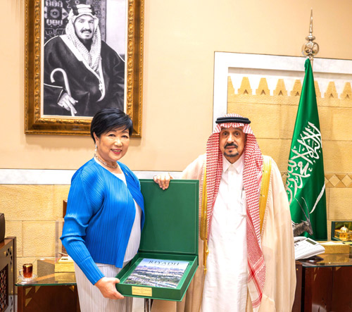 استقبل صاحب السمو الملكي الأمير فيصل بن بندر بن عبدالعزيز أمير منطقة الرياض في مكتبه بقصر الحكم أمس، معالي محافظ طوكيو السيدة كويكي يوريكو والوفد المرافق لها الذي يزور المملكة حاليًا.