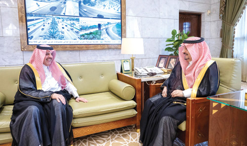 من جهة ثانية استقبل سمو أمير منطقة الرياض في مكتبه أمس صاحب السمو الأمير الدكتور عبدالعزيز بن محمد بن عيّاف المستشار الخاص لخادم الحرمين الشريفين نائب وزير الداخلية المكلف، بمناسبة الثقة الملكية بتكليفه نائبًا لوزير الداخلية.