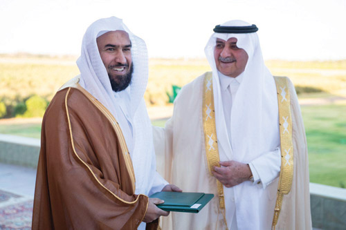 وقال: «اليوم نعيش مسيرة أخرى للتطور والنماء، في هذه الجائزة دعماً للمزارعين، وشحذاً للهمم، لما يخدم هذا الوطن الغالي والمواطن، وضماناً للغذاء، وتنمية ورخاء، فمنذ أن أمرتم بها ياسمو الأمير والزراعة في تطور، حيث رفعت الجائزة كفاءة استخدام النظم الإلكترونية للري، وترشيد الاستهلاك، والتخطيط السليم للمزارع، ومواكبة المعايير العالمية للإنتاج والسلامة، ضمان الأمن الغذائي، ودعم الاقتصاد، وصولاً إلى الاكتفاء الذاتي -بمشيئة الله-.
