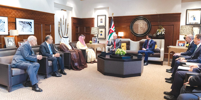 استقبل جلالة الملك عبدالله الثاني ابن الحسين ملك المملكة الأردنية الهاشمية، بحضور صاحب السمو الملكي الأمير الحسين بن عبدالله الثاني ولي عهد المملكة الأردنية الهاشمية، أعضاء اللجنة الوزارية المكلّفة من القمة العربية الإسلامية المشتركة غير العادية بشأن التطورات في قطاع غزة، برئاسة صاحب السمو الأمير فيصل بن فرحان بن عبدالله وزير الخارجية، وحضور عددٍ من أعضاء اللجنة، وذلك في قصر الحسينية بالعاصمة عمّان أمس.