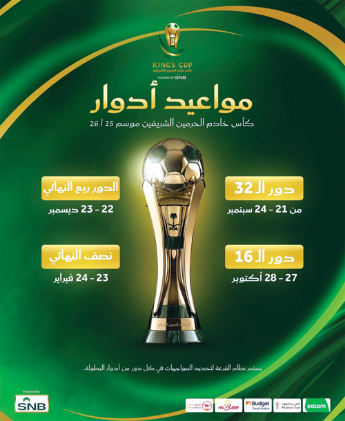 تسحب عند الساعة 4:00 من مساء اليوم الاثنين قرعة دور الـ32 من مسابقة كأس خادم الحرمين الشريفين للموسم الرياضي القادم. وستحتضن استوديوهات ssc بالرياض مراسم سحب القرعة بحضور رئيس وأعضاء لجنة المسابقات باتحاد الكرة وممثلي الأندية.