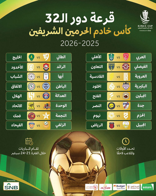 أجريت عصر أمس مراسم قرعة مسابقة كأس قرعة كأس الملك للموسم المقبل، والتي تم توزيع الفرق الـ 32 في البطولة على مستويين الأول والثاني، حيث جاءت أندية دوري روشن للعام المقبل في المستوى الأول في حين جاءت أندية دوري يلو للعام المقبل في المستوى الثاني وتمت مراسم سحب القرعة بحيث يلتقي كل فريق من المستوى الأول بفريق من المستوى الثاني على أن تكون المباراة على أرض الفريق من المستوى الثاني، وأسفرت القرعة عن المواجهات التالية:
