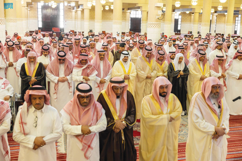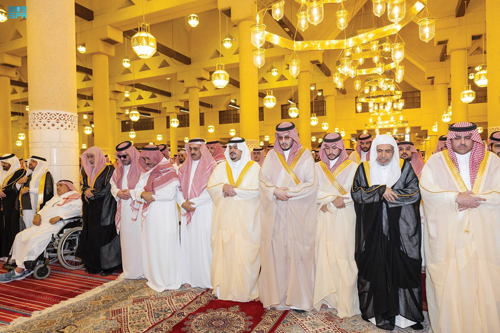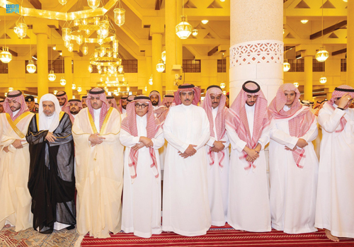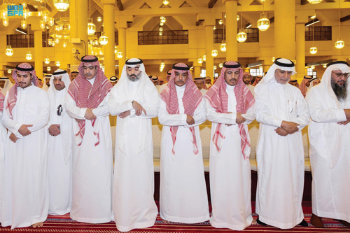 وأدى الصلاة مع سموه، صاحب السمو الملكي الأمير أحمد بن فهد بن سلمان بن عبدالعزيز، وصاحب السمو الأمير محمد بن فهد بن محمد بن سعود الكبير.