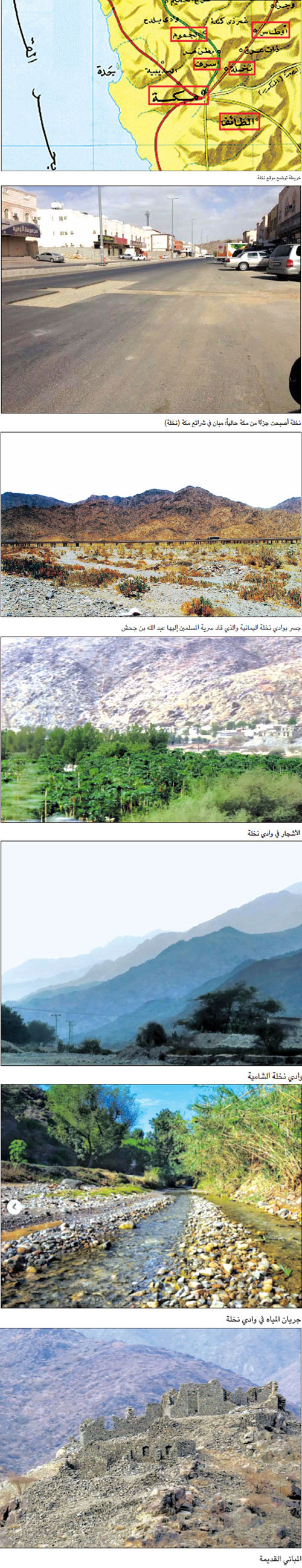 ويقول البلادي: «بلفظ النخل شجرة التمر: جاء في ذكر سرية عبد الله بن جحش وهما نخلتان: الشاميّة واليمانيّة، والمقصود في هذه الرواية نخلة اليمانيّة، لأنها على الطريق القديم بين مكة والطائف، وما كانت القوافل تسير بينهما إلا فيها. والنخلتان متجاورتان في المنبع والمصب، فكلاهما تأخذ أعلى مساقط مياهها من السراة الواقعة غرب الطائف، ثم تنحدران شمالاً ثم غرباً حتى تجتمعا في ملقى كان يسمى بستان ابن معمر ثم يكونان وادي مرّ الظهران».