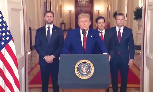 وقال ترامب في منشور على منصته «تروث سوشيال»: «تم تدمير موقع فوردو».. وسحبت الولايات المتحدة القنبلة النووية من يد إيران وحققت إنجازاً هائلاً.. وأضاف أن إيران قتلت وأصابت الآلاف من الأمريكيين واستولت على السفارة الأمريكية في طهران خلال إدارة الرئيس السابق كارتر .. مؤكداً أن منشآت التخصيب النووي في طهران دُمّرت بالكامل.