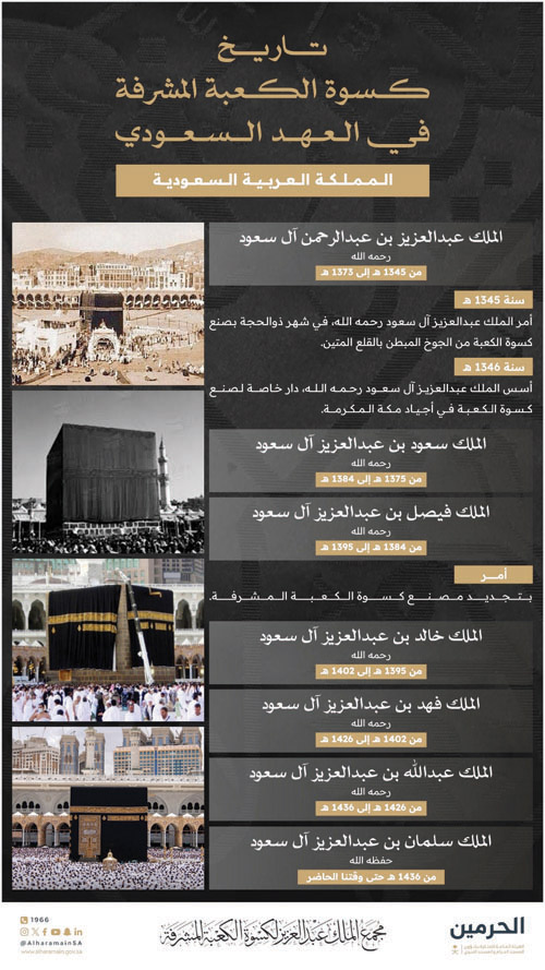 وتروي كسوة الكعبة المشرفة منذ 100 عام عناية المملكة الفائقة بالحرمين الشريفين، وحرصها على تجديد كسوة الكعبة المشرفة في مشهد مهيب وتاريخي يتجدد كل عام.