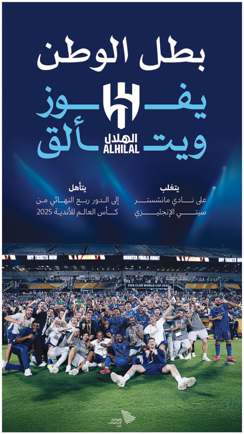 يومٌ تفوق فيه الهلال ممثل المملكة وآسيا والعرب وقهر وهزم ظروف النقص والإصابات والإرهاق وصافرة كادت تسلبه حقه، قبل أن يهزم منافسه مانشيستر سيتي الانجليزي العنيد والعتيد والمتكامل والقوي جدا بسيناريو مثير وبرباعية تاريخية حجز بها مقعده في ربع نهائي كأس العالم للأندية في أمريكا ، ضاربا موعدا منتظرا مع فلوميننسي البرازيلي مساء الجمعة المقبل.
