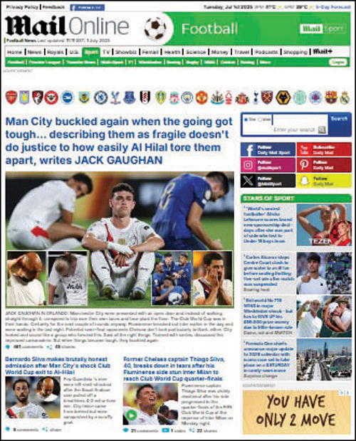 الميرور البريطانية: خرج مانشستر سيتي من بطولة كأس العالم للأندية لكرة القدم على يد الهلال بعد مفاجأة كبيرة في أورلاندو