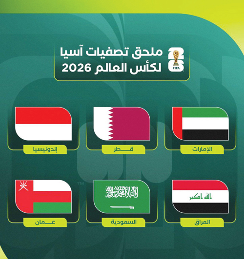 وستقام مباريات الملحق خلال الفترة من 8 الى 14 اكتوبر القادم بضيافة السعودية وقطر.