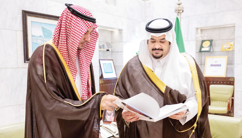 من جهة ثانية اطلع نائب أمير منطقة الرياض أمس على أعمال وجهود فرع المركز الوطني للرقابة على الالتزام البيئي بالمنطقة، وذلك خلال استقباله في مكتبه بقصر الحكم مدير عام الفرع المهندس فهد بن محمد النشاوي، وعددًا من منسوبي المركز.