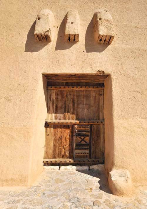 وزُخرفت جدران المصمك بفتحات ذات أشكال مثلثة ومستطيلة، وظهرت على جدران الغرف الداخلية زخارف جصية على هيئة مثلثات ودوائر، ورسومات بسيطة مستوحاة من عناصر البيئة المحيطة، كالنخيل والنجوم والأهلّة، وتتميز الجدران الخارجية بنتوءات تسمى «طرمات»، وهي فتحات ذات بروز خشبي تشبه الصندوق، استخدمت للمراقبة.