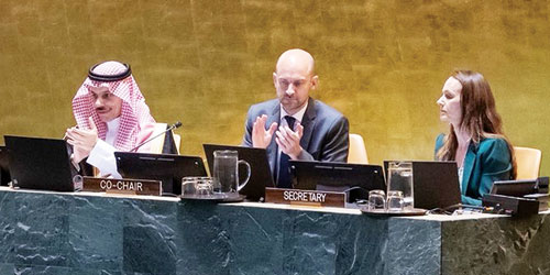 رأس صاحب السمو الأمير فيصل بن فرحان بن عبدالله وزير الخارجية، بالشراكة مع معالي وزير خارجية الجمهورية الفرنسية السيد جان نويل بارو، في مقر الأمم المتحدة بمدينة نيويورك أمس جلسة اليوم الثاني للمؤتمر الدولي رفيع المستوى حول التسوية السلمية للقضية الفلسطينية ...