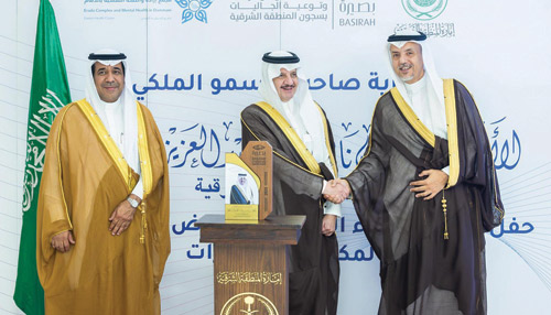كرم صاحب السمو الملكي الأمير سعود بن نايف بن عبدالعزيز، أمير المنطقة الشرقية، بديوان الإمارة أمس الجهات المشاركة في المعرض التوعوي بأضرار المخدرات، الذي نظمته جمعية الدعوة والإرشاد وتوعية الجاليات «بصيرة»، بالتعاون مع مجمع إرادة للصحة النفسية بالدمام، وبمشاركة 14 جهة حكومية.