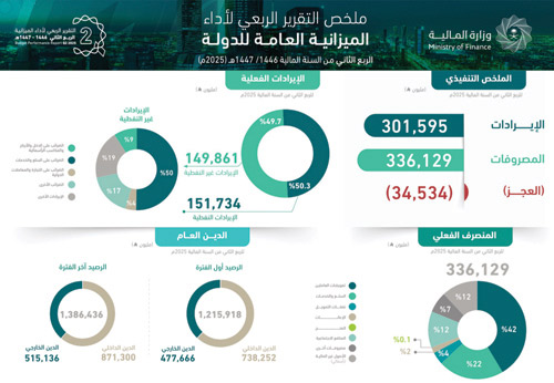 وناقش المجلس العرض المقدم من وزارة المالية حيال التقرير الربعي لأداء الميزانية العامة للدولة للعام المالي الجاري 2025م، الذي اشتمل على تفصيل للأداء المالي حتى نهاية الربع الثاني، ومؤشرات الإيرادات والمصروفات والدّين العام، حيث كشفت نتائج التقرير مواصلة دعم الحكومة للمشروعات التنموية والخدمية، وتنفيذ الإصلاحات الحكومية الهادفة لتحقيق الاستدامة المالية، وتنويع مصادر الدخل ضمن مستهدفات رؤية المملكة (2030).