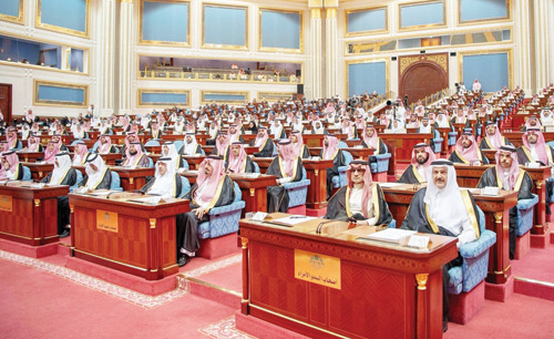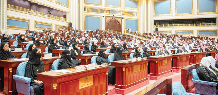 إن مجلس الشورى في سعي دائم لمواكبة عجلة التنمية وفق رؤية المملكة 2030 المباركة من أجل تحقيق تطلعات القيادة الرشيدة التي آمنت بدوره ومنحته رعايتها الكاملة، وهو في هذا اليوم يسعد بتشريفكم، ليبدأ مشوارًا جديدًا من العمل والعطاء لأعمال سنته الثانية من دورته التاسعة بعد أن شهدت سنته الأولى إنجاز العديد من الموضوعات التي خرجت بعد اجتماعات مكثفة، ودراسات كافية، وجهود متواصلة، حيث صدر عن مجلس الشورى خلال السنة الأولى من الدورة التاسعة (462) أربعمائة واثنان وستون قرارًا، منها: (180) مائة وثمانون قرارًا تتعلق بالتقارير السنوية للأجهزة الحكومية، و(55) خمسة وخمسون قرارًا تتعلق بالأنظمة واللوائح، و(225) مائتان وخمسة وعشرون قرارًا تتعلق بالاتفاقيات والمعاهدات ومذكرات التفاهم، كما أن ما يلقاه مجلس الشورى من دعم واهتمام من القيادة الرشيدة -أيدها الله- قد أكسب المجلس مكانة كبيرة وتأثيرًا فاعلًا في العديد من المنظمات والمؤتمرات البرلمانية الإقليمية والدولية، مما أسهم في التعريف بجهود المملكة ومواقفها، وإبراز مكانتها، والدفاع عنها، وخدمة قضاياها في الاجتماعات والمحافل البرلمانية المختلفة.