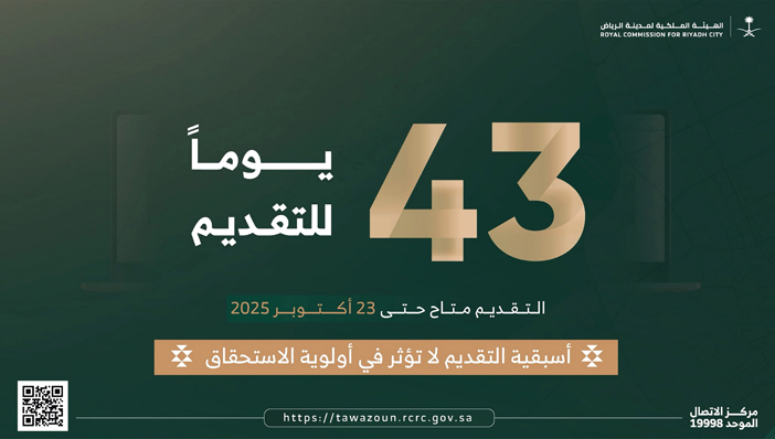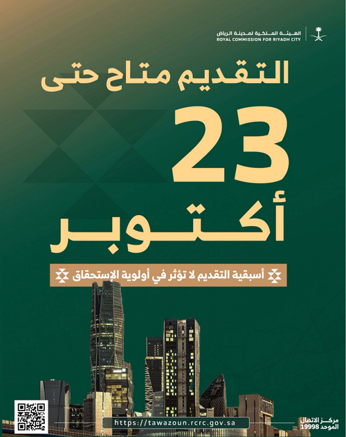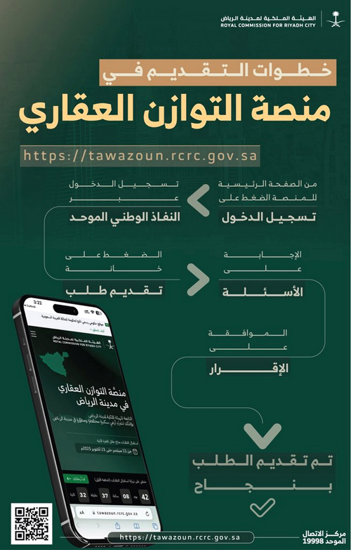 وأكدت الهيئة أنَّ أسبقية التسجيل لا تؤثر في أولوية الاستحقاق، وأن التسجيل في المنصة لا يعني القبول التلقائي، مبينة أن منصّة «التوازن العقاري» https://tawazoun.rcrc.gov.sa/، هي القناة الرقمية الوحيدة لتقديم الطلبات، ولا تمثّلها أي جهة أو وسيط خارجي.