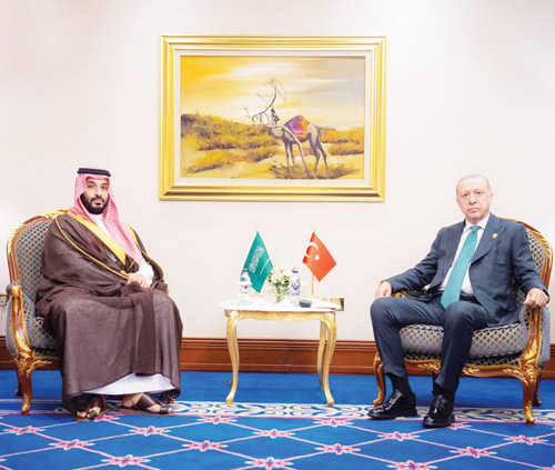 كما التقى صاحب السمو الملكي الأمير محمد بن سلمان بن عبدالعزيز آل سعود ولي العهد رئيس مجلس الوزراء، في العاصمة القطرية الدوحة أمس، على هامش أعمال القمة العربية الإسلامية الطارئة، فخامة الرئيس رجب طيب أردوغان رئيس الجمهورية التركية، والوفد المرافق له.
