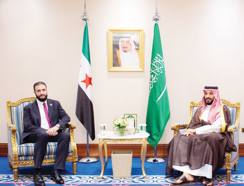 من جانب آخر التقى صاحب السمو الملكي الأمير محمد بن سلمان بن عبدالعزيز آل سعود ولي العهد رئيس مجلس الوزراء، في العاصمة القطرية الدوحة أمس على هامش أعمال القمة العربية الإسلامية الطارئة، فخامة الرئيس أحمد الشرع رئيس الجمهورية العربية السورية.