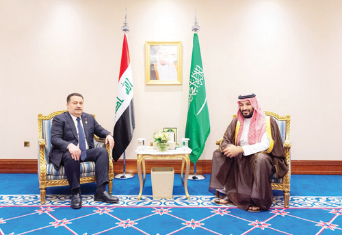 كما التقى صاحب السمو الملكي الأمير محمد بن سلمان بن عبدالعزيز آل سعود ولي العهد رئيس مجلس الوزراء، في العاصمة القطرية الدوحة أمس على هامش أعمال القمة العربية الإسلامية الطارئة، دولة السيد محمد شياع السوداني رئيس مجلس الوزراء في جمهورية العراق.