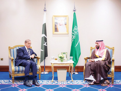 كما التقى صاحب السمو الملكي الأمير محمد بن سلمان بن عبدالعزيز آل سعود ولي العهد رئيس مجلس الوزراء، في العاصمة القطرية الدوحة أمس على هامش أعمال القمة العربية الإسلامية الطارئة، دولة السيد محمد شهباز شريف رئيس الوزراء في جمهورية باكستان الإسلامية والوفد المرافق له.