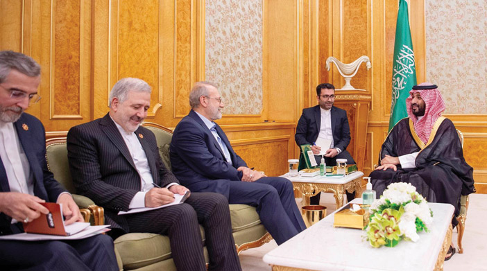استقبل صاحب السمو الملكي الأمير محمد ابن سلمان بن عبدالعزيز آل سعود ولي العهد رئيس مجلس الوزراء، في مكتبه بقصر اليمامة أمس الأمين العام للمجلس الأعلى للأمن القومي الإيراني السيد علي لاريجاني والوفد المرافق.