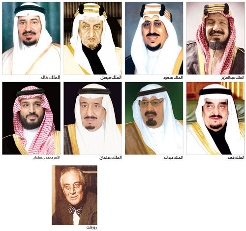 وأكد ذلك الموقف الصريح من قضية الأمم «فلسطين» في لقائه بالرئيس الأمريكي روزفلت عام 1945م على ظهر السفينة الأمريكية كوينسي في منطقة البحيرات في مصر بعد لقاء ديكسون بسنوات، وقد نشر المترجم الأمريكي أسرار تلك القمة، كانت الأحداث في العالم ملتهبة والحرب العالمية الثانية تعلن نهاياتها، وكانت طموحات الملك عبدالعزيز البحث لدولته قليلة الموارد عن إستراتيجية جديدة تضمن لها موقعا في عالم النفط الجديد وامتيازاته مع الشركات العالمية آنذاك، ولكنه لم ينس قضية الأمم «فلسطين» إذ أقنع الرئيس الأمريكي بعدالة الطرف العربي واستحقاقاته التاريخية، ولولا وفاة الرئيس الأمريكي روزفلت بعد هذا اللقاء بمدة قصيرة لتغيرت مجريات الأحداث بسبب المعلومات التاريخية التي أقنع بها الملك عبدالعزيز روزفلت، وكانت هناك رسائل متبادلة صريحة بين الطرفين حول تلك القضية وكانت لغة الملك عبدالعزيز جلية وصريحة في الدفاع عن حقوق العرب، منشورة في كتاب القمة الأمريكية - السعودية الأولى بقلم عقيد بحري متقاعد وليم إيدي وترجمة حسن الجزار، في ذلك اللقاء ناقش الرئيس روزفلت جلالة الملك تطورات الحرب واستعرض ثقته بأن الألمان منهزمون، وعرض إنقاذ البقية الباقية من اليهود في وسط أوروبا الذين يذوقون رعبا لا يوصف على يد النازيين كما وصف مؤلف الكتاب، ونص أن الملك رد عاجلا: «أعطهم وأحفادهم أراضي الألمان ومنازلهم الذين اضطهدوهم...» وكان حوارا تاريخيا عميقا بين الزعيمين.