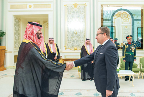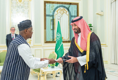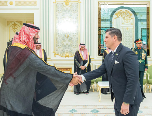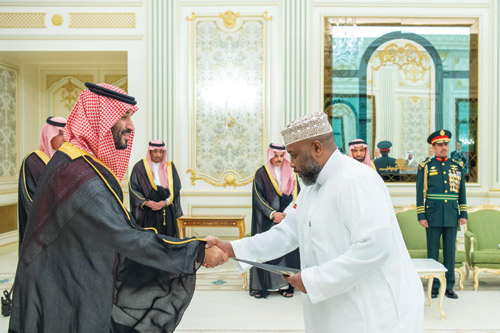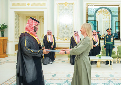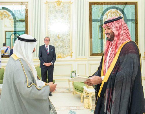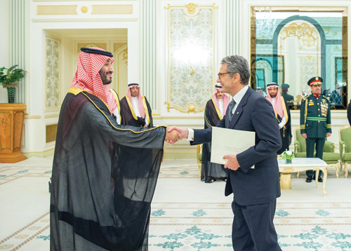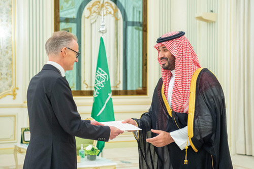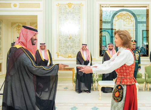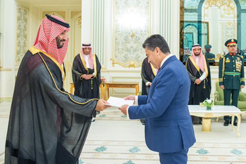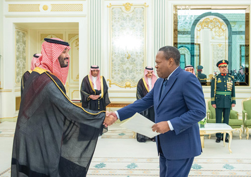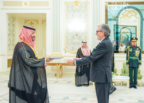 نيابة عن خادم الحرمين الشريفين الملك سلمان بن عبدالعزيز آل سعود -حفظه الله-، تسلم صاحب السمو الملكي الأمير محمد بن سلمان بن عبدالعزيز آل سعود ولي العهد رئيس مجلس الوزراء، بالديوان الملكي في قصر اليمامة أمس أوراق اعتماد سفراء عدد من الدول الشقيقة والصديقة المعينين لدى المملكة.
