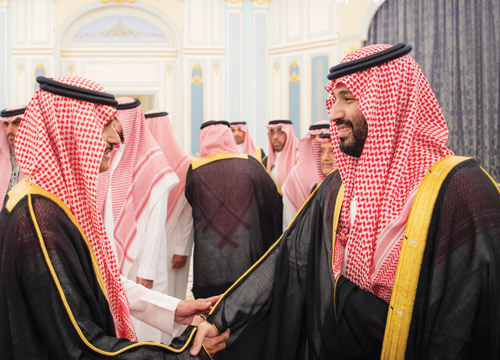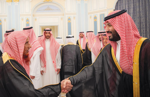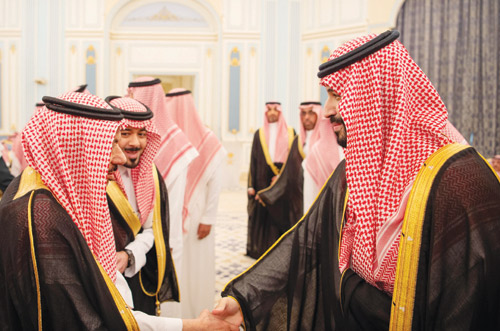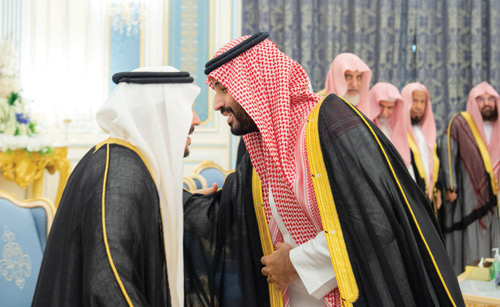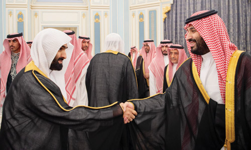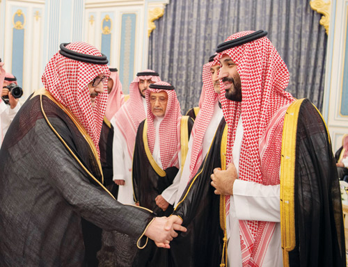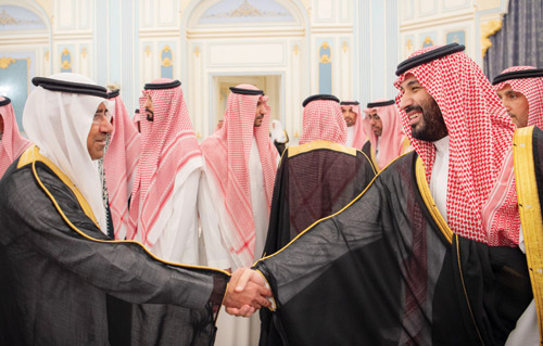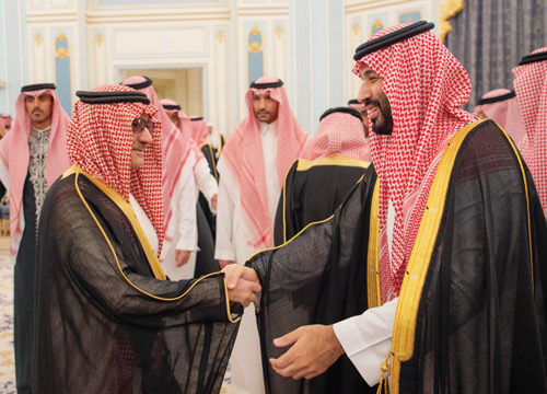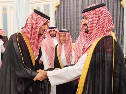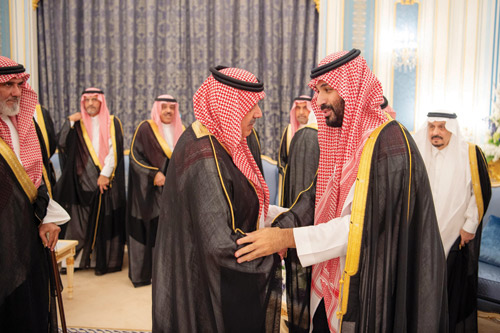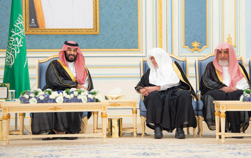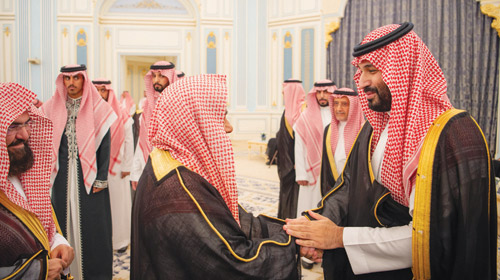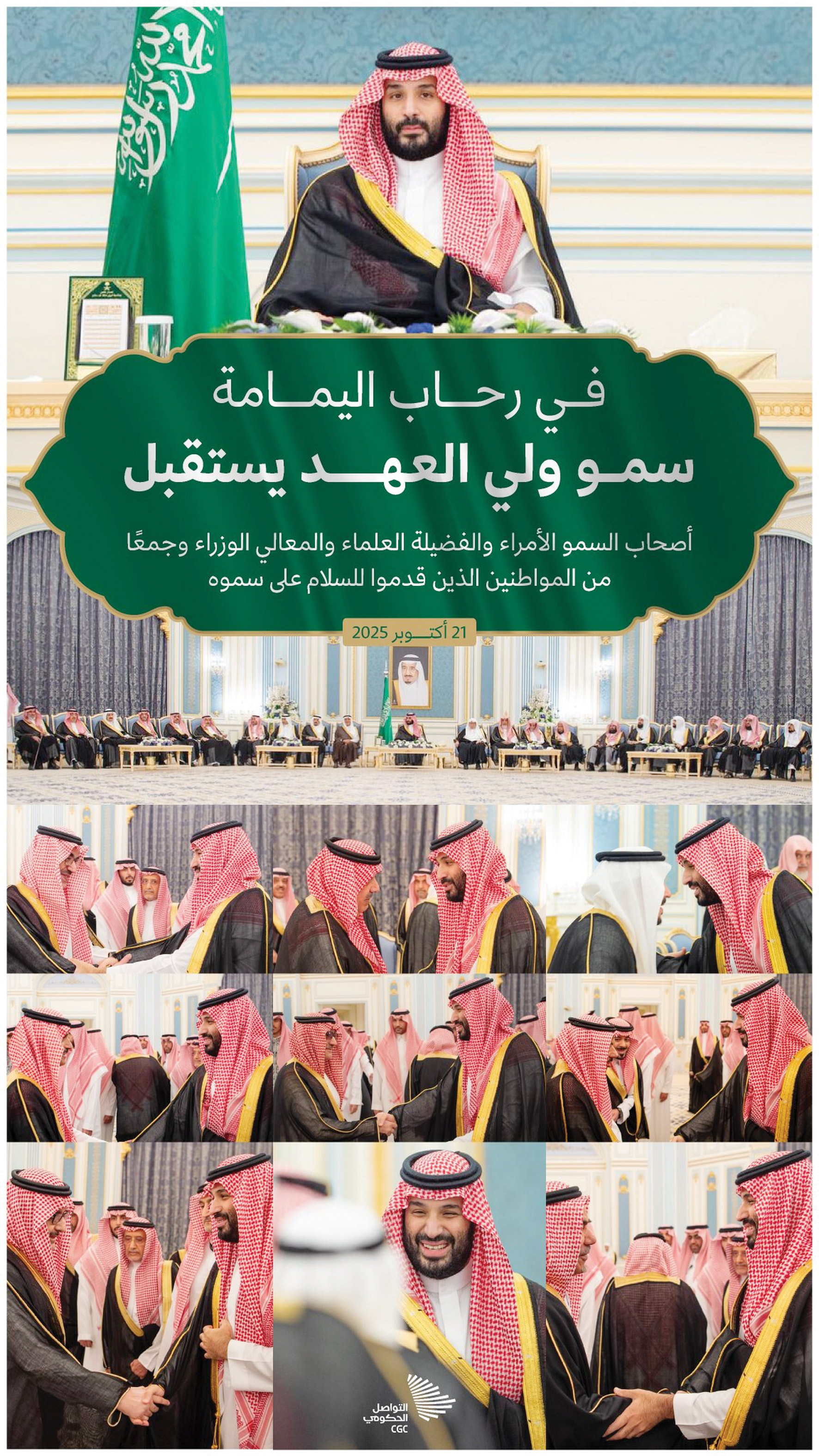 استقبل صاحب السمو الملكي الأمير محمد بن سلمان بن عبدالعزيز آل سعود ولي العهد رئيس مجلس الوزراء، في الديوان الملكي بقصر اليمامة في الرياض، أمس، أصحاب السمو الأمراء، وأصحاب الفضيلة العلماء والمعالي الوزراء وجمعًا من المواطنين، الذين قدموا للسلام على سمو ولي العهد حفظه الله.