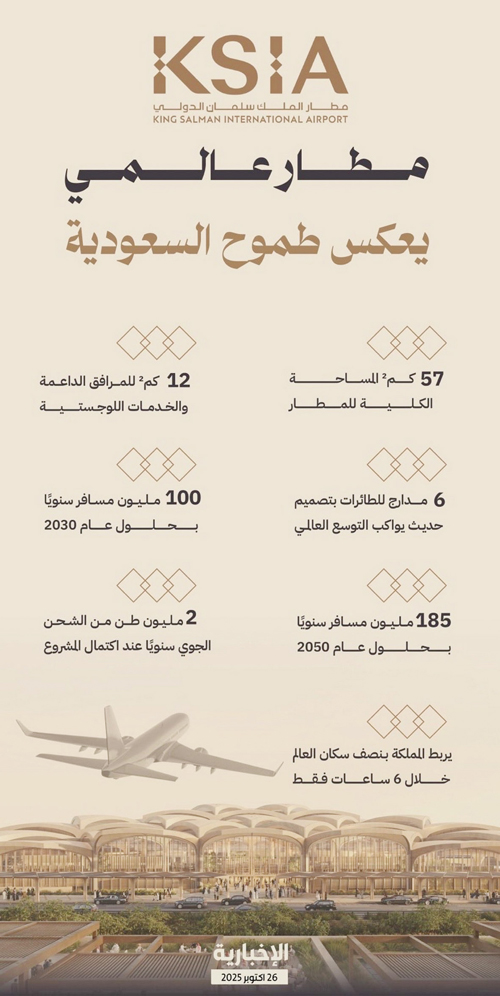 وجاء إطلاق الهوية البصرية تحت شعار «رحلتك.. وجهتك»، ليعكس التزام المطار بإعادة تعريف تجربة السفر عبر التركيز على الابتكار، والاستدامة، والتصميم الذي يضع احتياجات المسافرين في المقام الأول؛ حيث يُعد مطار الملك سلمان الدولي بوابة المستقبل إلى العاصمة الرياض، ومشروعًا محوريًا في تحقيق مستهدفات رؤية المملكة 2030.