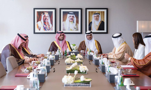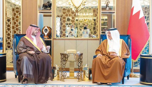 من جهة ثانية استقبل صاحب السمو الملكي الأمير سلمان بن حمد آل خليفة ولي العهد رئيس مجلس الوزراء في مملكة البحرين، بقصر القضيبية أمس صاحب السمو الملكي الأمير تركي بن محمد بن فهد بن عبدالعزيز وزير الدولة عضو مجلس الوزراء، والوفد المرافق له.
