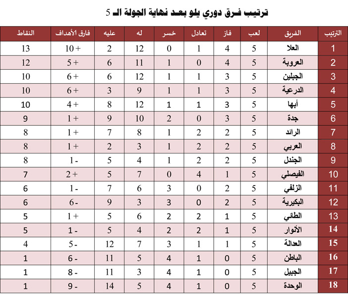 بينما يتواجد الدرعية في المركز الرابع برصيد 10 نقاط، ويأمل بالخروج بانتصار يعزز حضوره لخطف المركز الثاني من منافسه العروبة.
