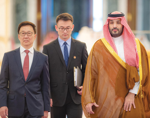 استقبل صاحب السمو الملكي الأمير محمد بن سلمان بن عبدالعزيز آل سعود، ولي العهد رئيس مجلس الوزراء، في الديوان الملكي بقصر اليمامة، في الرياض، أمس، معالي نائب رئيس جمهورية الصين الشعبية السيد هان تشنغ.