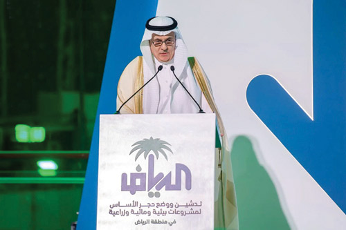 دشَّن صاحب السمو الملكي الأمير فيصل بن بندر بن عبدالعزيز أمير منطقة الرياض مساء أمس، (82) مشروعًا تنمويًّا لمنظومة البيئة والمياه والزراعة في المنطقة، بتكلفة مالية تجاوزت (9.8) مليارات ريال، ووضع سموه حجر الأساس لـ(99) مشروعًا تنمويًّا للمنظومة، بتكلفة تجاوزت (28.3) مليار ريال؛ دعمًا لتحقيق الاستدامة البيئية والمائية وفقًا لمستهدفات رؤية 2030.