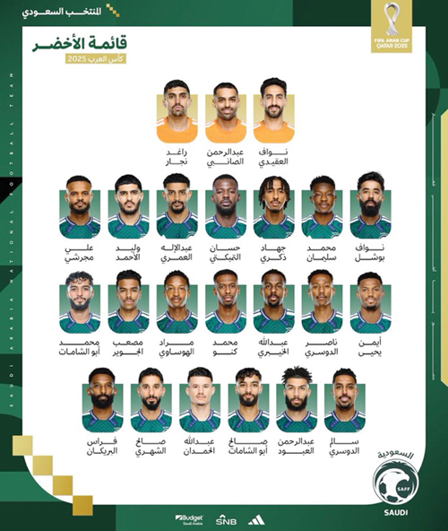 اختار الفرنسي إيرفي رينارد المدير الفني لمنتخبنا الوطني الأول لكرة القدم قائمة من 23 لاعباً استعدادا للمشاركة في بطولة كأس العرب المقرر إقامتها في قطر خلال الفترة من 1 وحتى 18 ديسمبر المقبل.