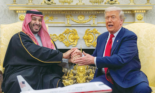 ولأن ولي العهد السعودي جاء إلى أمريكا مثقلاً بهموم الأُمَّة، لم يتردد في أن يطلب إلى الرئيس ترامب التدخل بفعل شيء مؤثر حاسم لإنهاء الحرب في السودان الشقيق لوضع حد نهائي لنزيف الدم هنالك، ومع أن ترامب أكد أنه لم يكن ضمن خططه التدخل في موضوع السودان لشدة تعقيده، إلا أنه وعد بالاستجابة لطلب ولي العهد، مع إدراكه أن الأمر لن يكن سهلاً، تماماً كما فعل ولي العهد من أجل سوريا أثناء زيارة ترامب الأخيرة إلى الرياض، فاستجاب الأخير برفع العقوبات الأمريكية عنها لمنحها فرصة جديدة للانطلاق. ثم يعود ولي العهد ليؤكد بالطريقة نفسها في المكان ذاته: لا تطبيع مع إسرائيل إلا بقبولها بحل الدولتين وقيام دولة فلسطين المستقلة.