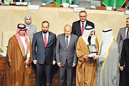 بحضور الأمين العام لجامعة الدول العربية ووزراء الإعلام العرب ومندوب المملكة في الجامعة العربية تم أول أمس تكريم رئيس التحرير الأستاذ خالد بن حمد المالك بمقر الجامعة، وجاء التكريم من الأمانة العامة لجامعة الدول العربية؛ تقديراً لما قدَّمه من أعمال جليلة في المشهد الإعلامي العربي، بحسب وصف الأمانة العامة لجامعة الدول العربية في اختياره للتكريم.