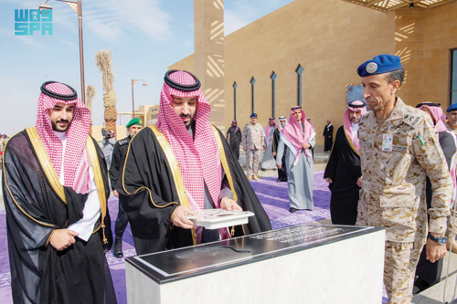 وفور وصول سمو ولي العهد، عُزف السلام الملكي، ثم تفضل -رعاه الله- بافتتاح المرافق. ثم التُقطت الصورة التذكارية لسمو ولي العهد مع ضباط المشروع.