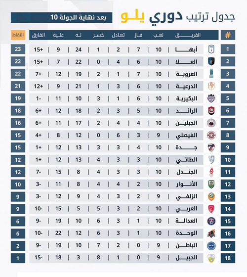 تنطلق الجمعة والسبت مباريات الجولة الحادية عشرة من دوري يلو لأندية الدرجة الأولى للمحترفين وتختتم يوم الأحد، وسط تنافس قوي في مقدمة الترتيب وصراع للهروب من مناطق الخطر، في مواجهات مهمة قد تغيّر ملامح جدول الدوري في هذه الجولة.
