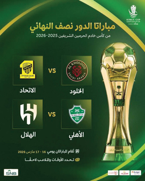 من جانبها قررت لجنة المسابقات باتحاد الكرة تعديل موعد مباراتي الدور نصف النهائي من كأس الملك بحيث تقامان يومي 16و17 مارس المقبل، بدلًا من موعدها السابق المقرر 23و 24 فبراير المقبل.