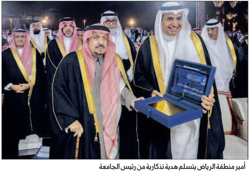 وجرياً على عادة صاحب السمو الملكي الأمير فيصل بن بندر بن عبدالعزيز أمير منطقة الرياض -حفظه الله-، السنوية، حرص سموه على حضور الحفل، وتهنئة الخريجين، عرفاناً بما بذلوه خلال السنوات السابقة، وتمنى سموه لهم باستمرار التوفيق والنجاح في مراحلهم العملية القادمة، والجميل أن سموه أعرب عن سعادته بمشاركة أبنائه طلاب جامعة الأمير سلطان فرحتهم، منوهاً بما لمسه من إنجازات وتنظيم في الجامعة، وقال:» أنا سعيد أن أكون الليلة في هذه المناسبة التي تجسد العطاءات المبذولة من قبل الجامعة وتأتي ضمن المسيرة التعليمية في هذا الوطن المبارك بدعم من القيادة الرشيدة -حفظها الله-، مهنئاً الجامعة ومسؤوليها والخريجين بهذا الإنجاز، سائلًا الله لهم التوفيق في خدمة الدين والملك والوطن».