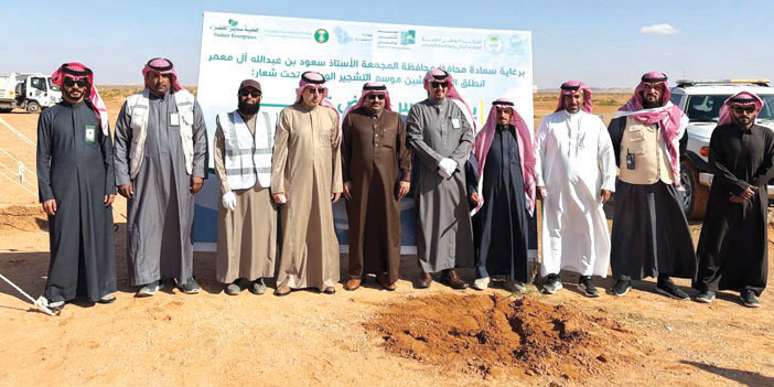 دشن محافظ المجمعة سعود بن عبد الله بن معمّر بحضور مدير عام فرع المركز الوطني لتنمية الغطاء النباتي ومكافحة التصحر بمنطقة الرياض ناصر بن عبد الله الناصر موسم التشجير الوطني بمحافظة المجمعة، وذلك ضمن الجهود الوطنية لتعزيز الاستدامة البيئية وتوسيع الغطاء النباتي وتحقيق مستهدفات رؤية المملكة 2030 ومبادرة السعودية الخضراء.