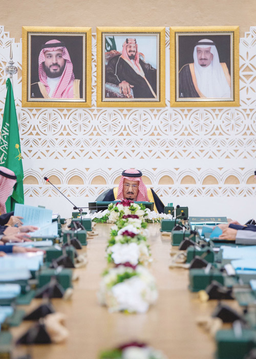 رأس خادم الحرمين الشريفين الملك سلمان بن عبدالعزيز آل سعود -حفظه الله-، الجلسة التي عقدها مجلس الوزراء أمس في الرياض.