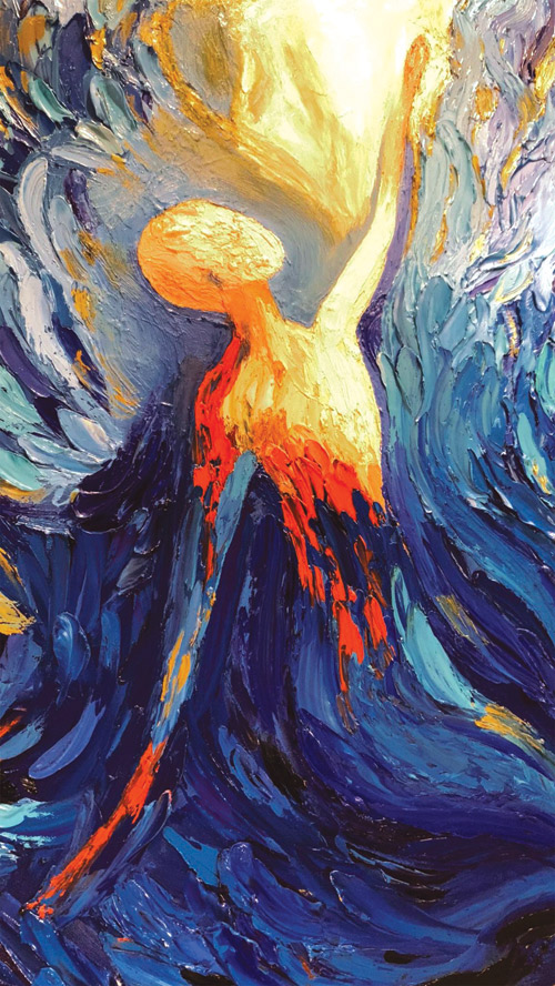 وتقول الفنانة إيمان الحميد: «لم أرسم شكلًا، بل رسمت حالة. العمل مساحة شعورية مفتوحة، لكل متلقٍ تجربته الخاصة معها».