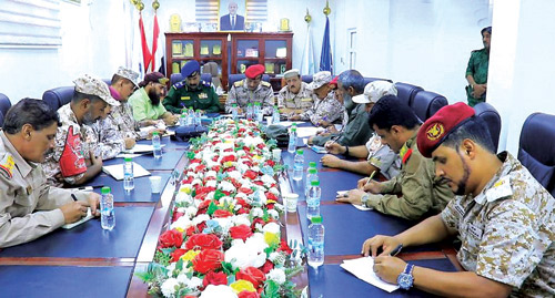 وأكد الرئيس العليمي أهمية العمل الجاد خلال المرحلة المقبلة على احتكار الدولة للسلاح في كامل مسرح العمليات، ومنع نشوء أي كيان عسكري، أو أمني خارج إطار الدولة.