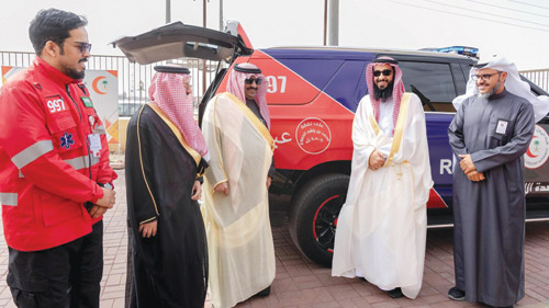 دشن محافظ المجمعة سعود بن عبدالله بن معمر يوم أول أمس في قطاع هيئة الهلال الأحمر السعودي بمحافظة المجمعة سيارة الاستجابة السريعة (عبية) وهي إحدى آليات الهيئة التي تستخدم في سرعة الوصول للمرضي والمصابين، وتعد أول سيارة على مستوى محافظات منطقة الرياض والتي تبرع بها رئيس الغرفة التجارية بمحافظة المجمعة ورجل الأعمال المهندس مشاري بن محمد الجربوع، وذلك بحضور نائب رئيس هيئة الهلال الأحمر السعودي ومدير عام منطقة الرياض الدكتور فهد بن صالح الحجاج.. وكان في استقباله لدى وصوله كبير مسعفي قطاع عمليات محافظة المجمعة غازي بن محمد العتيبي الذي صحبه في جولة داخل المقر، واطلع على الخدمات الاسعافية التي يقدمها القطاع.