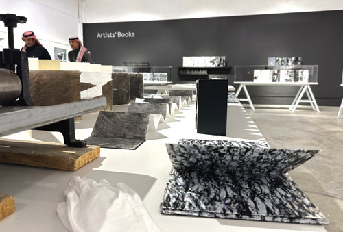 إلى جانبه، يقدّم الفنان السعودي فهد النعيمة رؤية تنطلق من الجسد والمادة ومن علاقة مباشرة مع الورق بوصفه سطحاً قابلاً للتشكّل والتأثّر، تجربته المتجذّرة في البحث المفاهيمي تضيف بعداً محلياً مهماً لهذا الحوار وتؤكّد أن كتاب الفنان ليس ممارسة مستوردة بل مساحة مفتوحة للتأويل والتجريب في السياق السعودي.