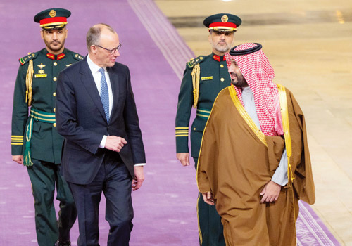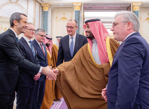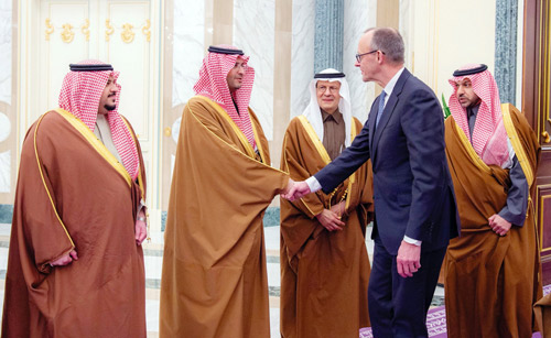 استقبل صاحب السمو الملكي الأمير محمد بن سلمان بن عبدالعزيز آل سعود ولي العهد رئيس مجلس الوزراء، في الديوان الملكي في قصر اليمامة بالرياض مساء أمس دولة المستشار الاتحادي لجمهورية ألمانيا الاتحادية فريدريش ميرتس.