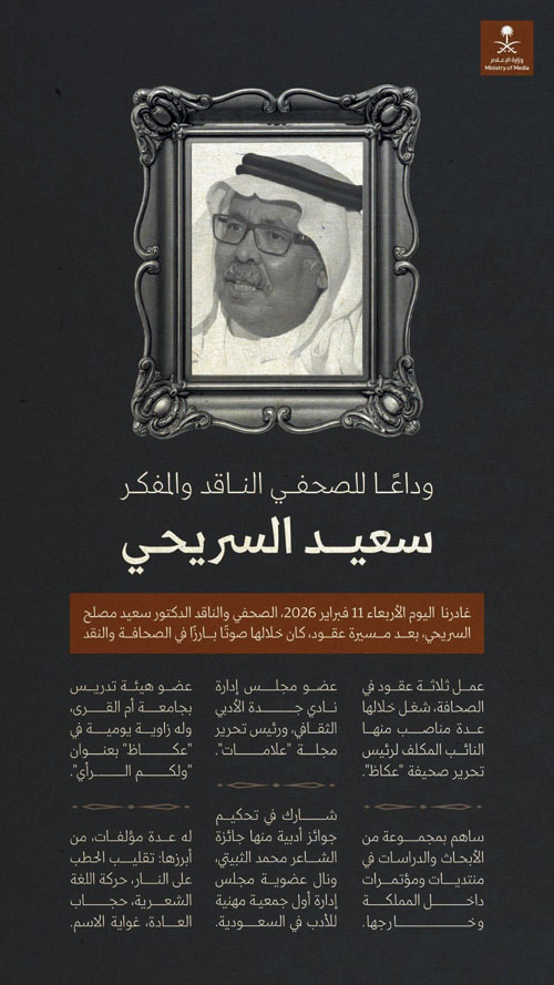 هذا ويمثل الأديب والناقد د.سعيد مصلح السريحي جيل روَّاد الأدب في المملكة وهو من أبرز أقطاب الصِّحافة فيها، فكان