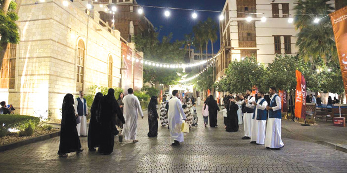 وتشهد ساحات ومسارات جدة التاريخية انتشارًا واسعًا للشباب والفتيات المشاركين في الفعاليات، الذين يرتدون الأزياء الحجازية التقليدية، ويتولى هؤلاء الشباب مهمة استقبال الزوار بالأهازيج والترديدات الفلكلورية القديمة التي كانت تُميز أهالي حارات جدة قديمًا عند استقبال ضيوفهم، ممزوجة بعبارات الترحيب الدافئة والدعوات الصادقة، مما يضفي على الأجواء الرمضانية طابعًا استثنائيًا يجمع الروحانية والبهجة.