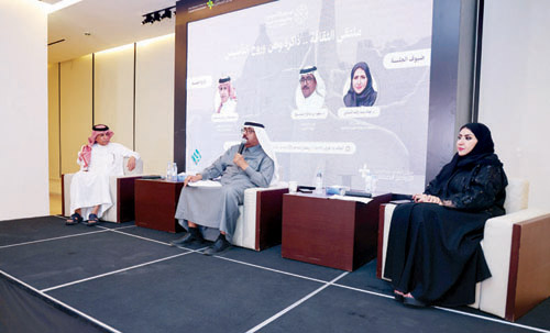 احتفت الجمعية السعودية للفنون التشكيلية بالتعاون مع مركز الملك عبد العزيز للتواصل الحضاري في ملتقى «الثقافة.. ذاكرة وطن وروح التأسيس» في مقر المركز يوم الأربعاء الماضي الموافق 7 رمضان 1447هـ - 24 فبراير 2026م، احتفاء بذكري يوم التأسيس السعودي، حيث تضمن الملتقى ندوة ثقافية ومعرضًا تشكيليًا ورسمًا مباشرًا أمام الحضور، وقد أدار الندوة الثقافية الدكتور عبد السلام السليمان المشرف على المركز الوطني لاستطلاعات الرأي العام وضيوف الندوة الدكتور سعود المصيبيح رئيس مركز تعارفوا للإرشاد الأسري الذي قدم ورقة عمل تتضمن محور بعنوان «الثقافة في الدولة السعودية الأولى» والدكتورة هناء الشبلي رئيس مجلس إدارة الجمعية السعودية للفنون التشكيلية التي قدمت ورقة عمل بعنوان (الفنون البصرية مرآة للهوية وحفظا للتراث) تحدثت فيها عن الفنون البصرية وقوة تأثيرها كقوة ناعمة على المجتمعات وكيفية استثمار هذه القوة في تنمية القيم الوطنية وتأصيل الهوية الثقافية السعودية عن طريق وسائل وتقنيات مختلفة تم استعراضها على الحضور.